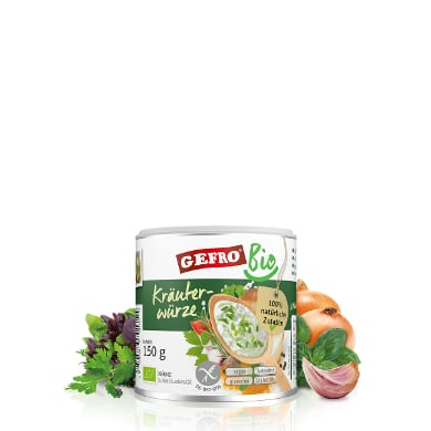 Herbs are very popular in modern cuisine, and many dishes only taste truly perfect once herbs are used. GEFRO’s ORGANIC Herb Seasoning makes it possible for you to perfect your dishes with the fresh taste of herbs, should you not have any fresh herbs at hand! Top off salads, raw food, vegetables, pasta dishes, cream cheese and dips, meat or fish in no time with our authentic herbal seasoning!